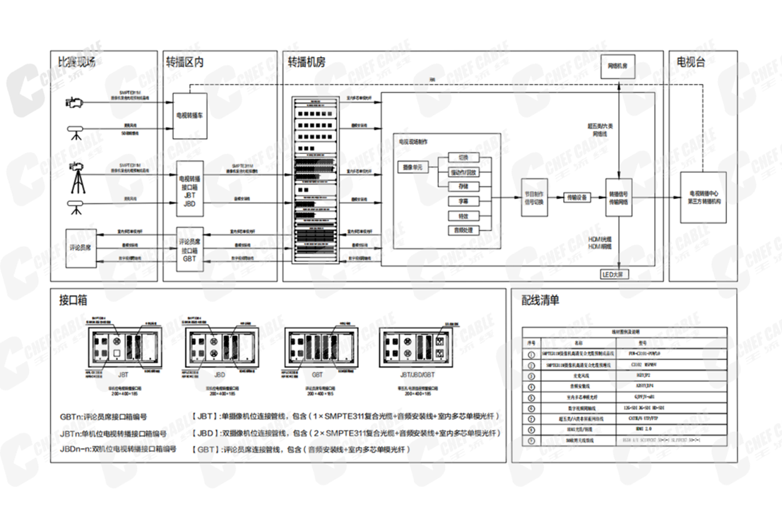 转播系统连接解决方案在多个领域和场景中发挥着关键作用,特别是在电视台节目制作、广电演播厅、剧场剧院、大型体育场馆等固定设施,以及国家重大活动、体育赛事、电竞比赛等户外移动应用中。