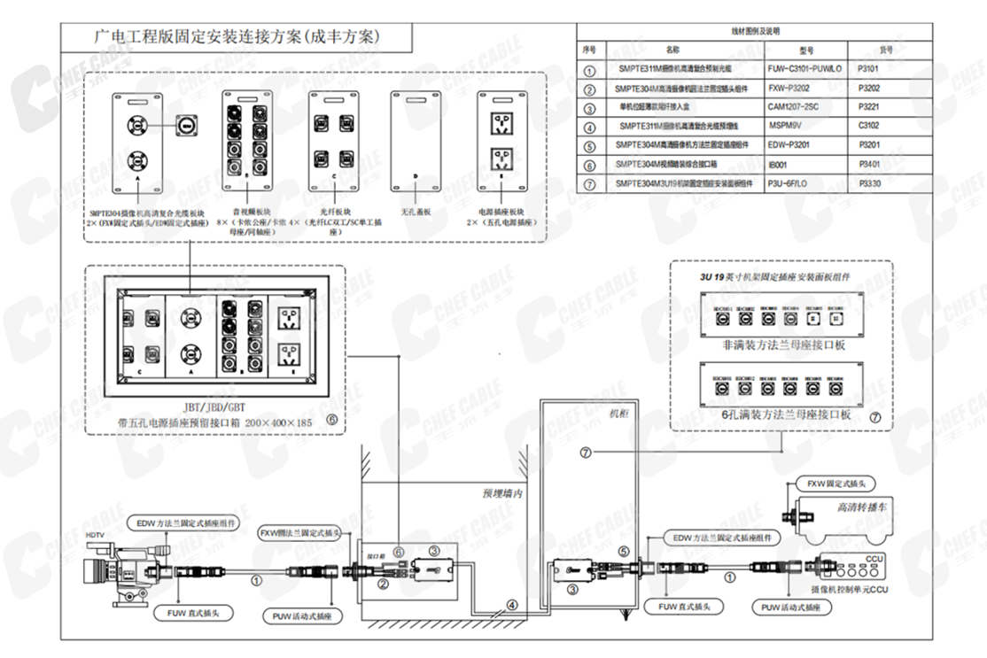 接口箱体规格(w×h×d):400×200×185,适用于转播系统中各个信号的转接,箱体材质:优质碳钢,表面灰白色涂装,内部可根据客户需求。搭配a面板最多可安装两个fxw固定式插头(smpte304摄像机高清复合光缆插座及线缆组件)。