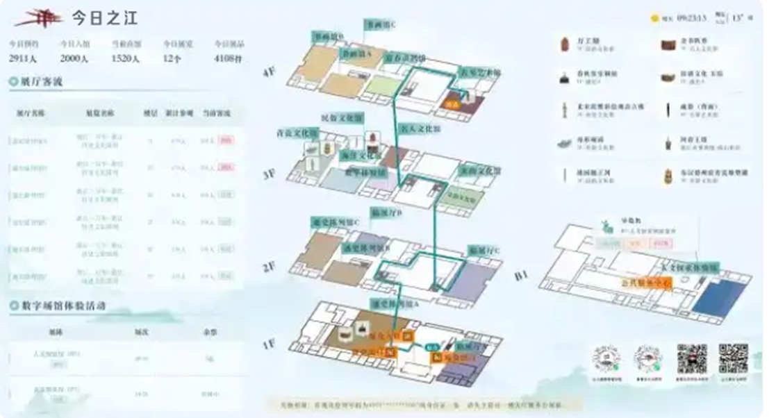 “云上浙博”可提供“今日之江”可视化服务,通过电子屏幕,参观者能够实时掌握展览信息、客流分布情况、设备状态等数据,从而合理规划参观路线、科学安排观展时间。